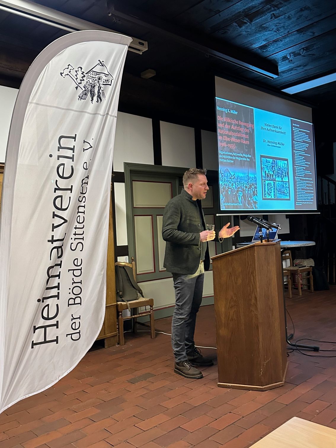 Am Mittwoch, den 25. Februar 2026, lud der Heimatverein der Börde Sittensen zu einem öffentlichen Vortrag in das Heimathaus Sittensen ein. Referent des Abends war der Historiker Dr. Henning Müller, stellvertretender Leiter des Kreisarchivs und ausgewiesener Experte für die völkische Bewegung. Zahlreiche Besucherinnen und Besucher füllten das Heimathaus und verfolgten die detaillierten Ausführungen mit großem Interesse.