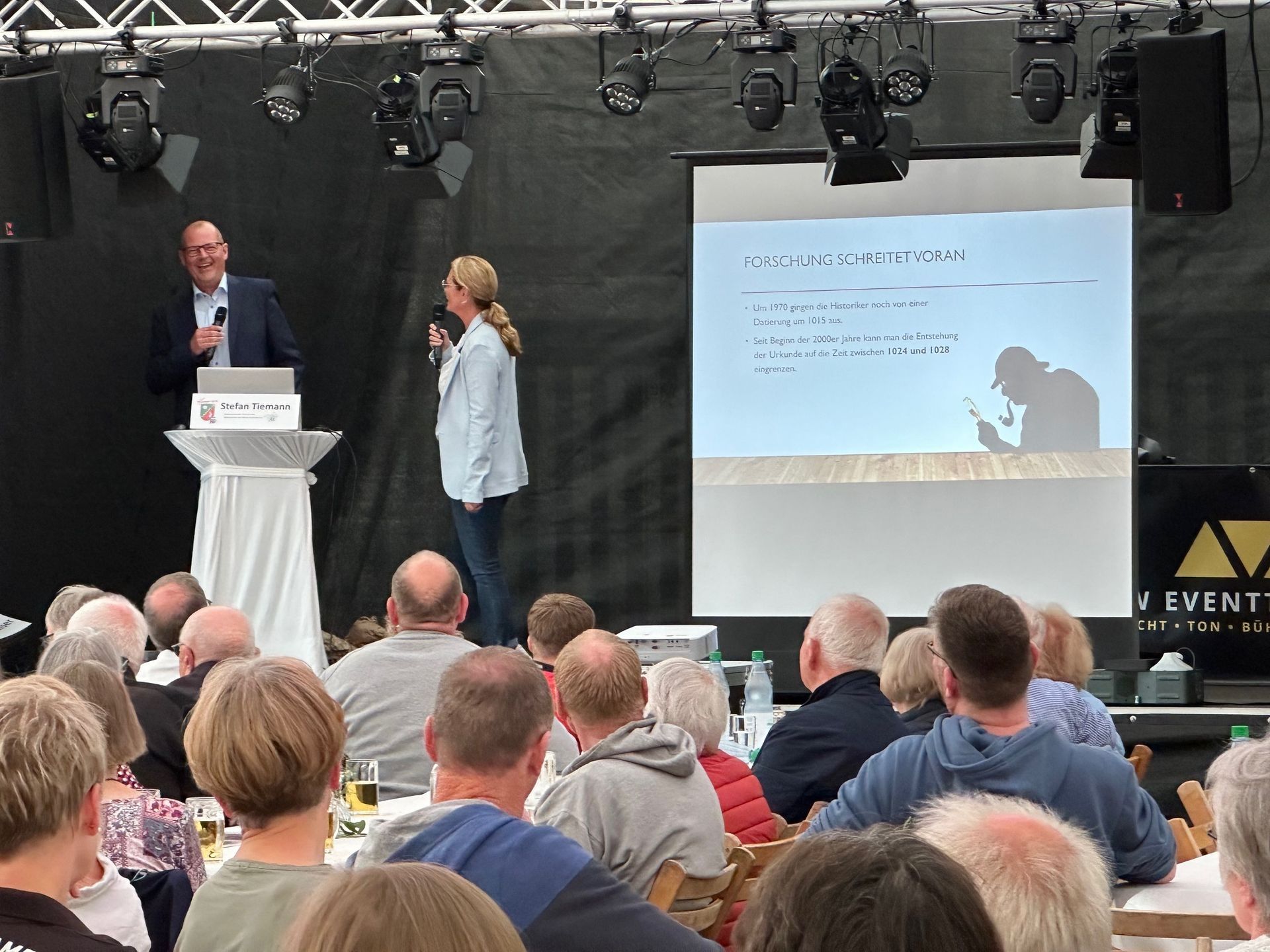 Das Festzelt in Hamersen war am vergangenen Freitag mit über 120 Gästen gut gefüllt. Zum Auftakt der dortigen 1000-Jahr-Feier waren neben dem Bürgermeister Gerd Kaiser und dem Kreisarchäologen Dr. Stefan Hesse auch der Heimatverein Sittensen geladen.